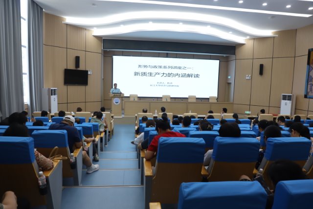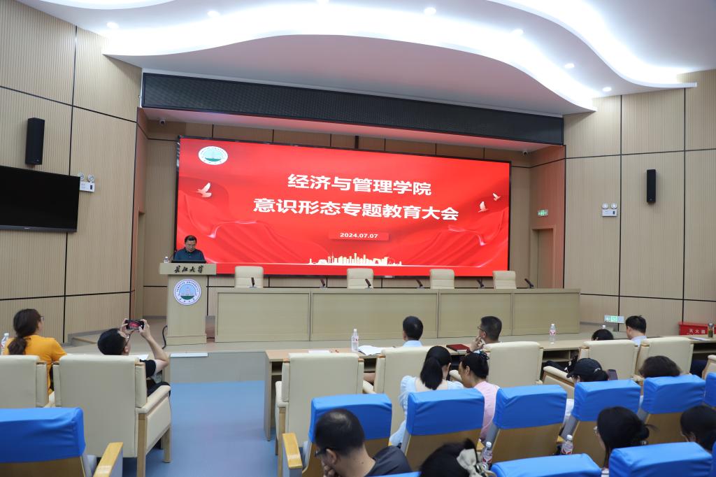 院长陈承在会上做了题为《新质生产力的内涵解读》的报告,对新质生产力的提出背景、核心要义进行了总结,并把发展新质生产力的现实背景与学院转型发展相结合,重申了推进“经管+”学科融合发展的战略意义。陈承结合学校党委行政提出的“六大行动”,围绕学科建设、科学研究、人才培养、师资队伍、培训创收、对外合作等六个方面对上半年学院工作进行了全面总结。同时,对下半年工作提出了具体要求:一是实施“经管+”行动,推进与石油、农业相关学科的交叉融合。围绕“技术-经济-管理-政策”这一逻辑主线,紧跟国家战略需求和学科前沿问题,整合校内校外资源,搭建跨学科的科研平台。二是实施“外引内育”行动,优化师资队伍结构,激发干事创业动力。加大人才引进政策宣传力度,大力实施教师能力提升行动,持续加强师德师风建设。三是实施人才培养质量提升行动,有组织培养造就拔尖创新人才。调整和优化本科专业结构,增强专业吸引力,推进产教融合、科教融汇。四是实施科研质量提升行动,有组织地服务国家和区域经济社会发展。建立跨学科研究团队,与中石油经济技术研究院等科研院所建立合作关系,深入调研荆州市政府部门,开展前期预研究,为承担十五五规划课题奠定基础。五是实施教职工“三感”提升行动,增强学院凝聚力和向心力。不断拓展办学资源,不断改善办学条件,创造更多教师发展机会,让学院发展成果惠及全体师生员工,让大家有获得感、归属感、幸福感。