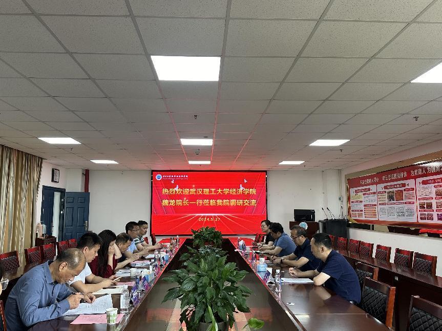 魏龙感谢学院的热情接待,简要说明了调研目的,并详细介绍了武汉理工大学经济学院的发展沿革,以及在学科交叉融合、数字化教育改革、自主拔尖人才培养、服务地方经济等方面的主要做法和取得的成绩。他表示,两个学院有相似的办学背景,有良好的合作基础,有较多的互补资源,未来应加强院际间的交流与合作,聚焦课程资源共享、共建实习基地、项目联合攻关、研究生联合培养等领域,建立合作机制,探索合作模式,并力争取得合作实效。