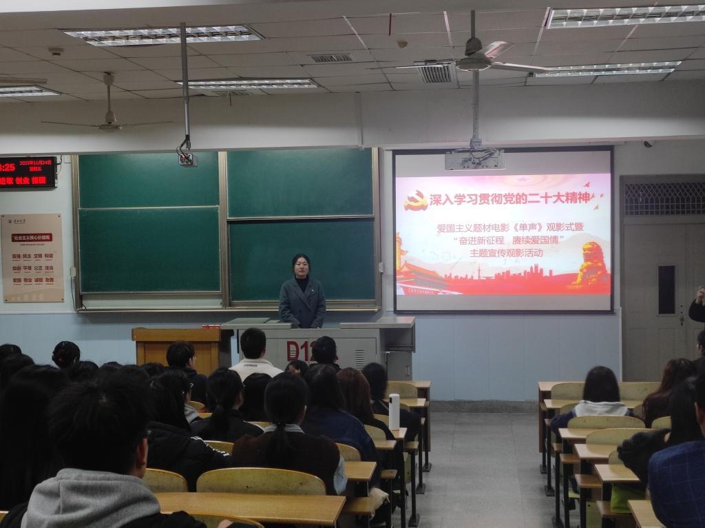 (通讯员:陶婧/文 肖扬/摄)为进一步弘扬爱国主义精神、厚植爱国主义情怀,2023年11月24日晚,kaiyun登录中国入口登录组织师生在13教D123开展“奋进新征程 赓续爱国情”主题宣传观影活动,集中观看爱国主义题材纪录电影《单声》。