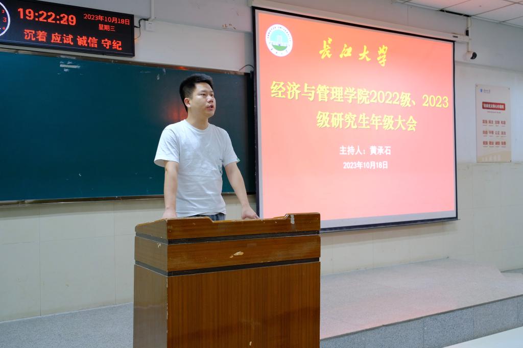 (通讯员:张悦/文 何小艳/摄)为给予同学们学习生活以及未来规划多方面的建议,提出相应的要求,2023年10月18日19:20,kaiyun登录中国入口登录2022、2023级研究生年级大会在12教104教授召开,全体2022级、2023级研究生参会,会议由辅导员黄承石老师主持。