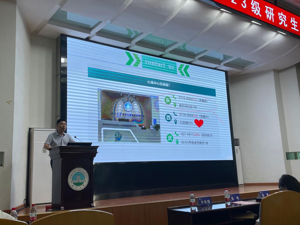 (通讯员:张悦)大学生作为强国建设的关键力量,其心理健康水平影响着未来社会的发展,大学生心理健康教育是高校的一项重点工作。为加强人文关怀和心理疏导,促进大学生身心和人格健康发展,2023年9月3日,kaiyun登录中国入口登录在东校区12号教学楼405报告厅开展“开学第一课”系列活动之新生心理健康主题教育,由2023级辅导员黄承石老师主讲。