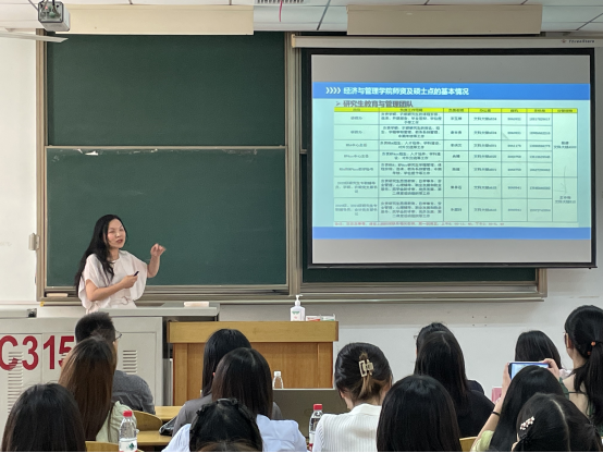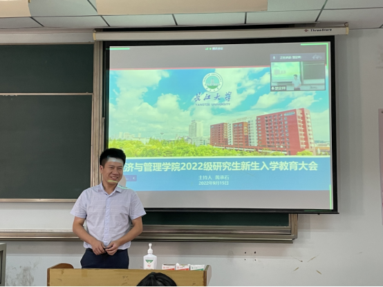 会议伊始,黄承石老师进行自我介绍、入学安全教育及日常管理说明,包括疫情防控专题教育以及安全稳定专题教育,讲例结合,提高同学们的防范意识。紧接着,朱翠玲老师提出“坚守教室、宿舍、自习室三个阵地、身心两个健康、一个目标”。随后裴潇副院长向MBA/MPAcc以及农硕同学分别详细讲解各专业硕士点培养的基本情况、对于硕士研究生培养教学管理要求、硕士学位授予条件、科研资助相关文件,强调研究生培养过程中需要重点注意的事项。强调了研究生保持正确学习态度的重要性,希望大家重视学术发展能力的提升。王中梅副书记对研究生日常管理工作提出要求,希望大家恪守纪律,向更加全面的青年人才发展。鼓励同学们在注重学术的同时,积极踊跃参与各种实践、创新活动,在过程中不断取得进步。