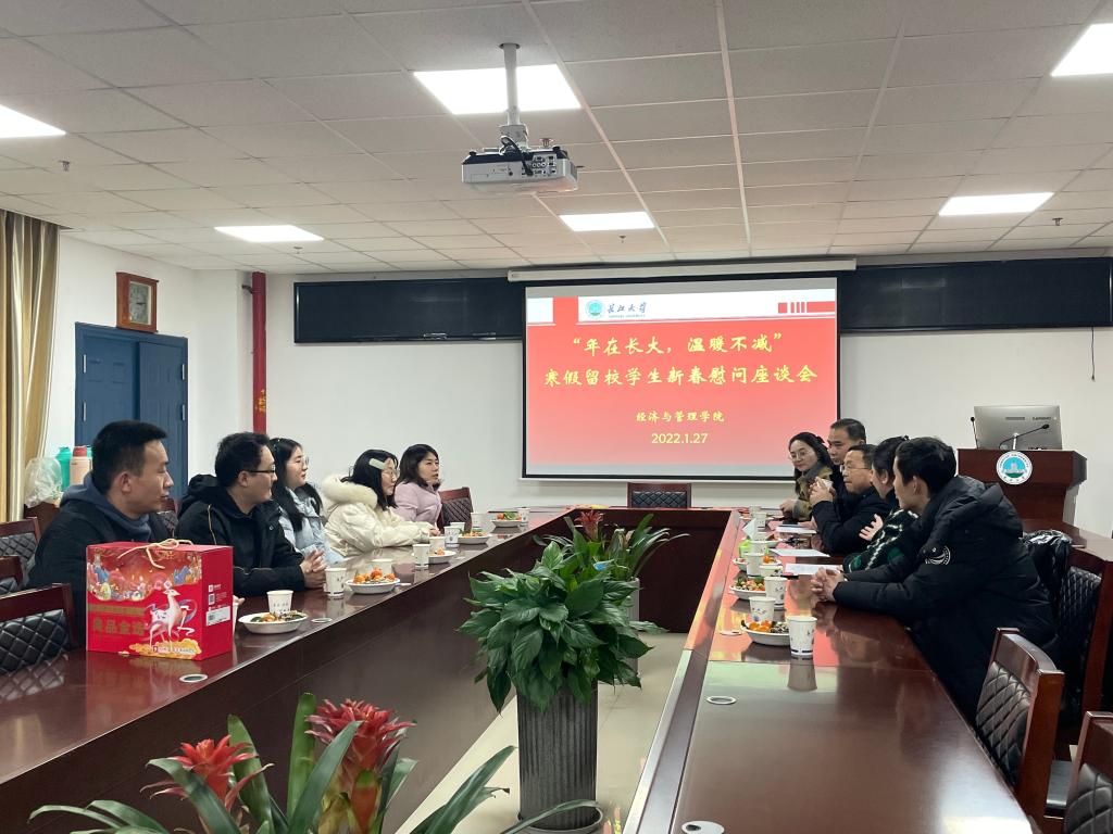 2022年1月27日下午,kaiyun登录中国入口登录寒假留校学生新春慰问座谈会在文科楼505会议室举行,会议由党委副书记王中梅主持,党委书记樊帆、学工办副主任叶星以及年级辅导员娄君庭、朱翠玲、李云妮参加了座谈会。