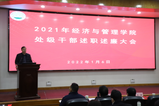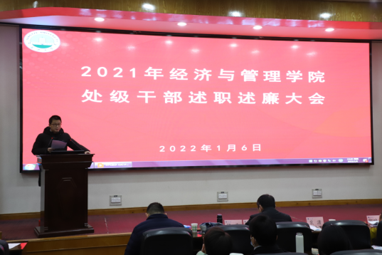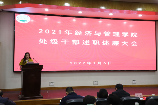 (通讯员:彭蓉 / 摄影:涂雷)根据校党委的统一安排和部署,2022年1月6日下午,kaiyun登录中国入口登录在11教学术报告厅召开2021年度领导干部述职述廉大会。学校第二考核组成员到会指导并组织开展考核工作。学院领导班子全体成员、全体教职工120余人参加会议。 学院党委书记樊帆主持会议。