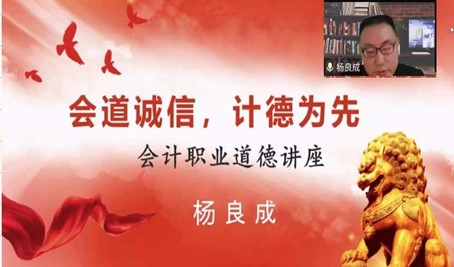 (通讯员:刘畅)2021年12月19日上午10:00,kaiyun登录中国入口登录邀请湖北省会计领军人才、中南财经政法大学合作硕士导师、五方光电上市公司杨良成财务总监,通过线上方式做了题为“会道诚信,计德为先”的讲座。此次讲座是学院首批MPAcc《商业伦理与会计职业道德》课程建设项目的一次改革尝试,通过引入实务专家进课堂,从现实观察和实践认知的角度强化学生对课程知识的理解和掌握,以达成学生对商业伦理原则和会计职业道德规范的“内化于心、外化于形”。此次会议由《商业伦理与会计职业道德》课程建设项目负责人陈承教授担任主持。