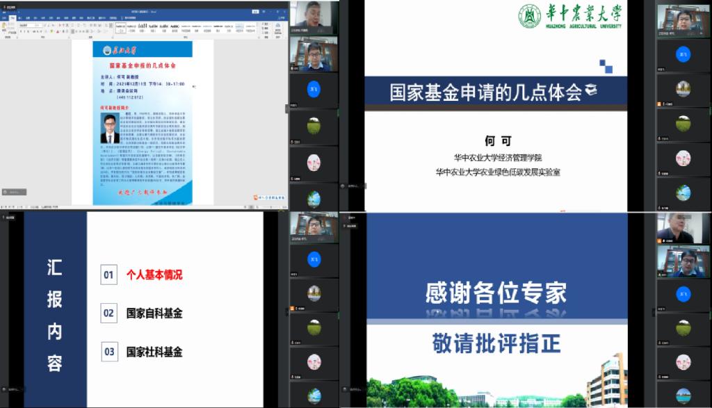 (通讯员:林龙飞)2021年12月11日下午2:30,kaiyun登录中国入口登录邀请华中农业大学何可副教授讲授国家基金申报经验与注意事项。 本次会议通过腾讯会议线上举行,近70位师生参加了会议。会议由副院长何蒲明教授主持。