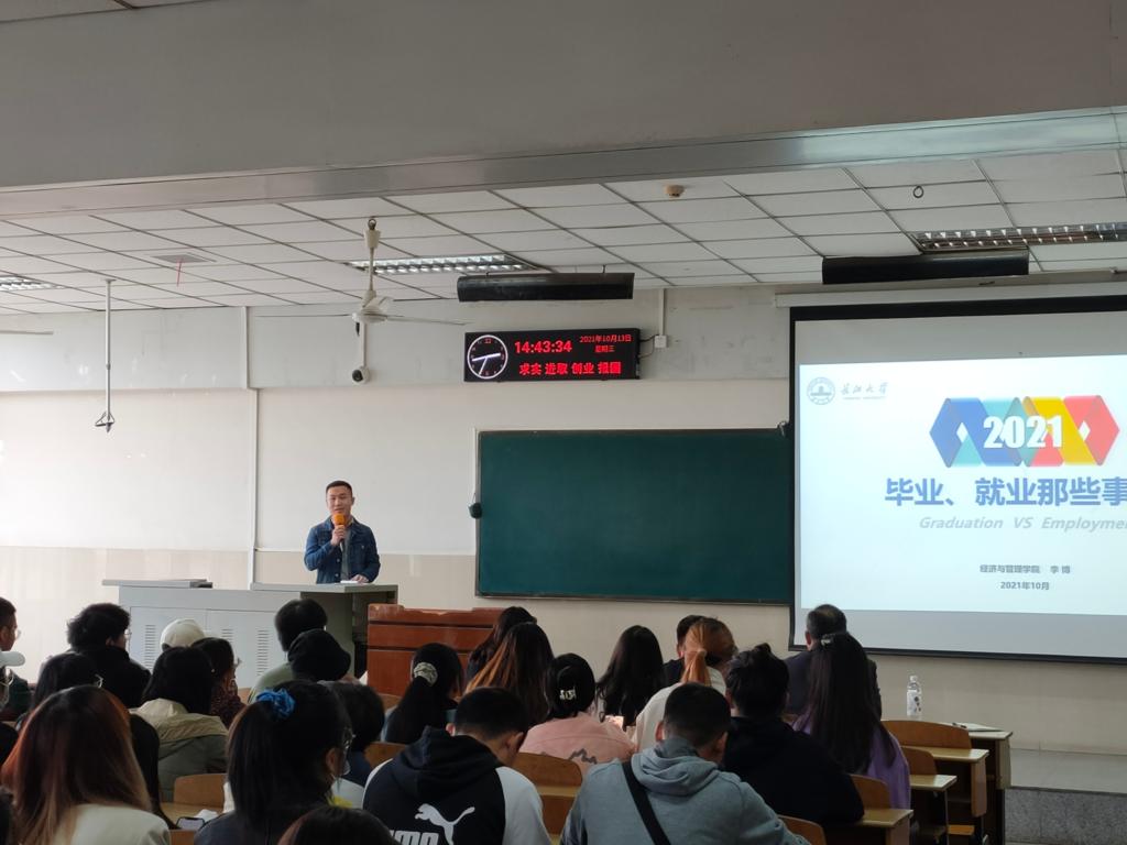 “先就业,再择业。”在就业动员环节,李博老师就今年线上签约的流程和注意事项进行说明,将当前毕业生的就业形势进行分析,针对之前学生咨询的签约问题进行详细的解答。