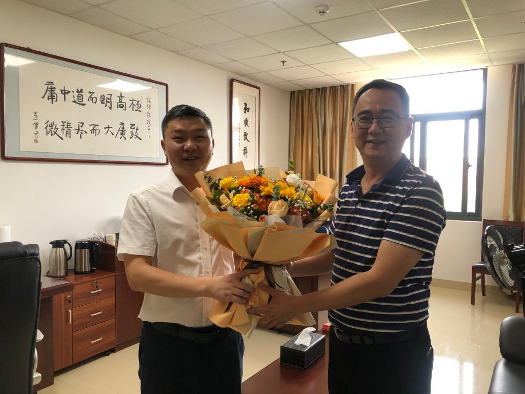 王建平副书记来到徐辉教授和李诗珍教授的办公室,与他们亲切交流,了解他们的教学科研工作进展与成果,向他们长期以来为学校发展做出的积极贡献表示诚挚的感谢,并送上鲜花和祝福;王建平副书记希望两位教授能继续发挥自身的优势和专长,在学科专业建设、创新团队打造、产学研工作等方面发挥核心作用。