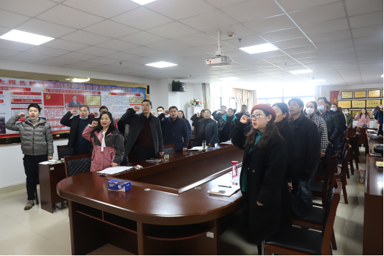 会议第一项,王中梅副书记带领全体党员重温入党誓词并在党旗下宣誓;第二项提醒同志们按时交纳党费;第三项,院党委书记樊帆带领大家进行理论学习,主要学习内容如下。