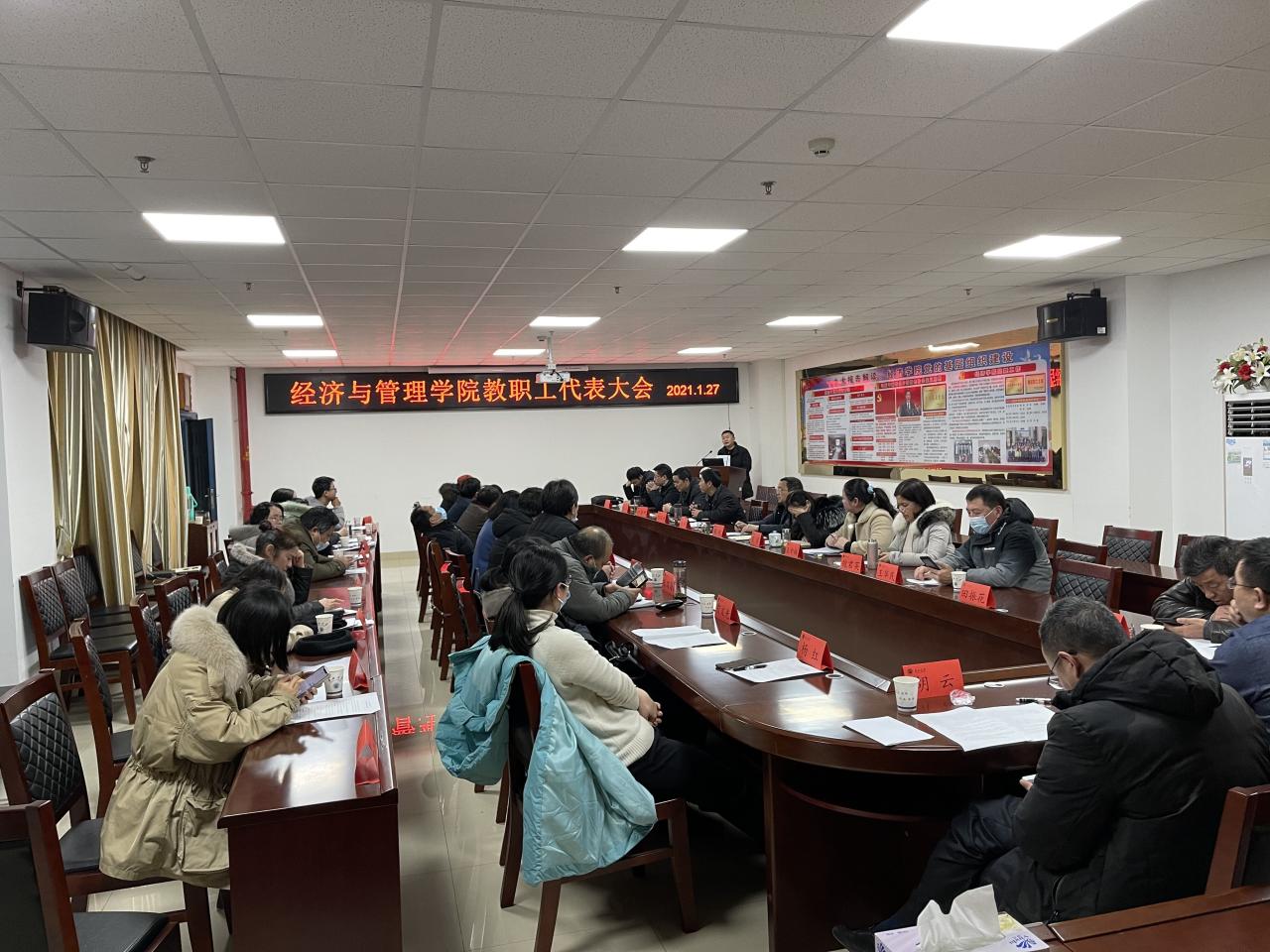 2021年1月27日下午,学院召开了教职工暨工会会员代表大会,会议由党委书记樊帆主持,44名教代会代表齐聚505会议室参加了会议。按照会议议程,院长工作报告、工会工作报告、财务工作报告依次进行,郭睦庚副院长代表财务分配委员会讲解了学院2020年奖励性绩效工资实施办法。