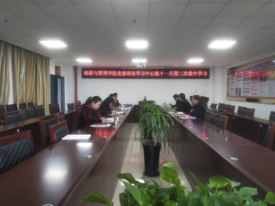 2019年11月18日上午,经济与管理学院党委理论学习中心组在文科楼505会议室开展了集中学习。学院党委书记樊帆主持会议,理论学习中心组的全体成员参加了学习。