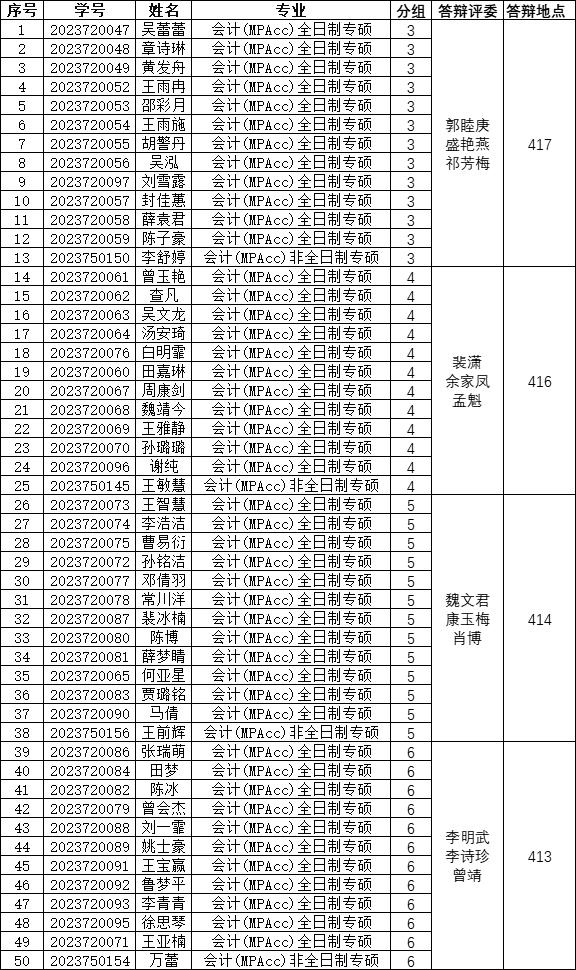 三、答辩小组分组安排