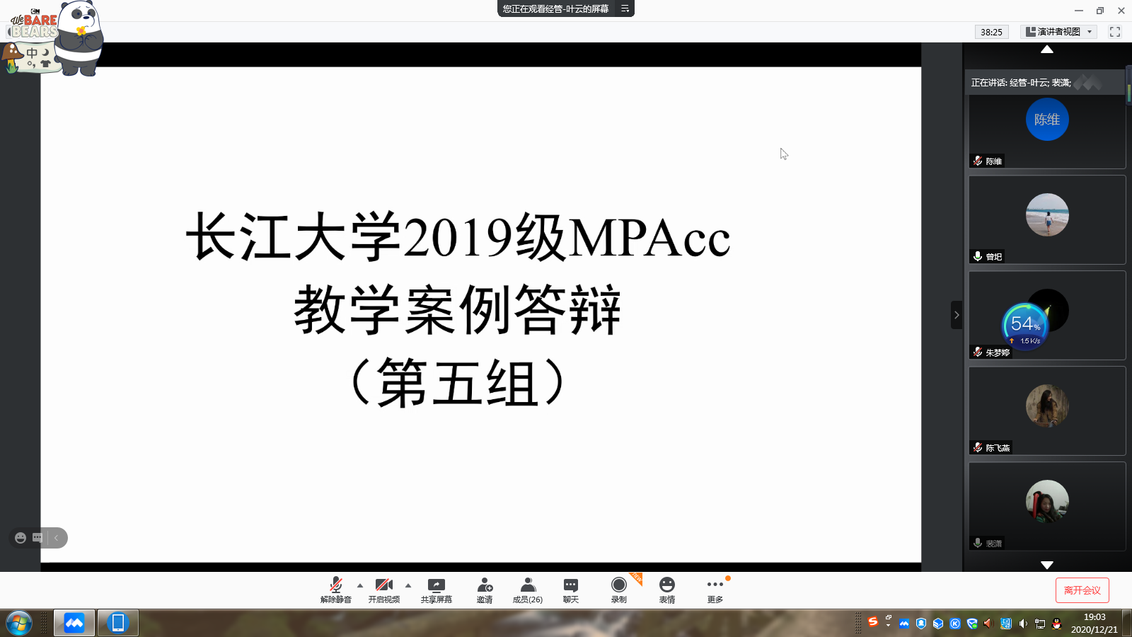 2020年12月20日至21日,kaiyun登录中国入口登录2019级MPAcc研究生教学案例论文答辩在文科大楼举行。受疫情影响,本次研究生教学案例论文答辩根据学校相关文件,采用线上和线下相结合的方式进行。