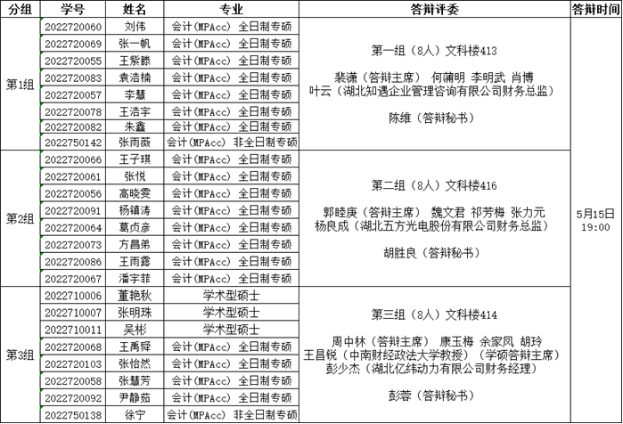 二、答辩小组分组安排