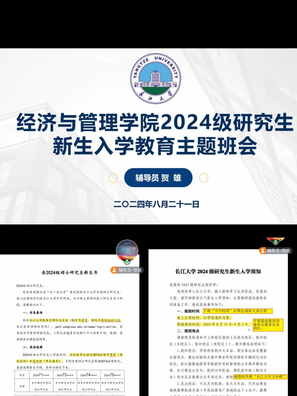 班会最后,辅导员对新生们提出了殷切的期望和祝福。他希望新生们能够珍惜研究生时光,努力学习专业知识,积极参与科研实践和社会实践,不断提升自己的综合素质和能力水平。同时,他也叮嘱新生们要时刻牢记安全第一的原则,无论是在校园内还是校园外,都要保持高度的安全意识和自我保护意识。