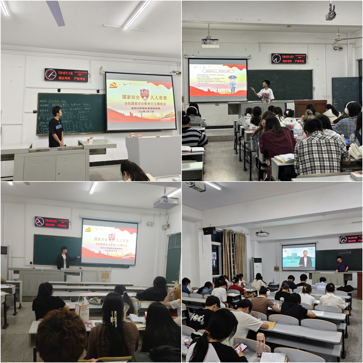 当天,各班级统一开展了“全国国家安全教育日”主题班会,由班级学生干部带领同学们一起学习国家安全知识,并利用晚自习时间集中观看了《千万高校学生同上一堂国家安全教育课》,专家们围绕总体国家安全观、军事安全、金融安全等领域,结合高校实际,立足学生视角,用真实生动的案例讲述了国家安全与每个人密切相关,也让同学们更加明确了自身肩负的使命与责任。