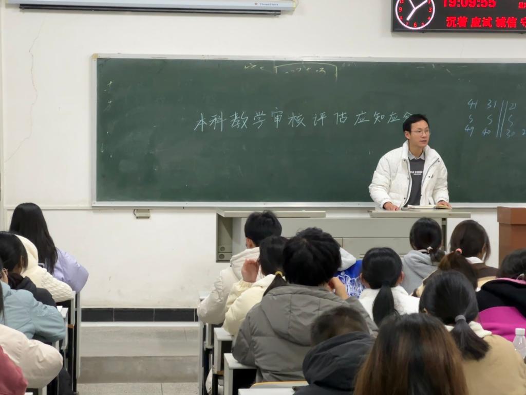 (通讯员 梁妍婧)为了迎接学校新一轮本科教育教学审核评估,营造人人关心、支持和参与的热烈氛围,全面提高学院师生对审核评估的认识和理解,以更好地推动我校教育教学质量的提升,学院组织开展了“本科教育教学审核评估应知应会手册”专题学习活动,本次活动通过专题班会、课前宣讲、宿舍走访等多种方式进行。