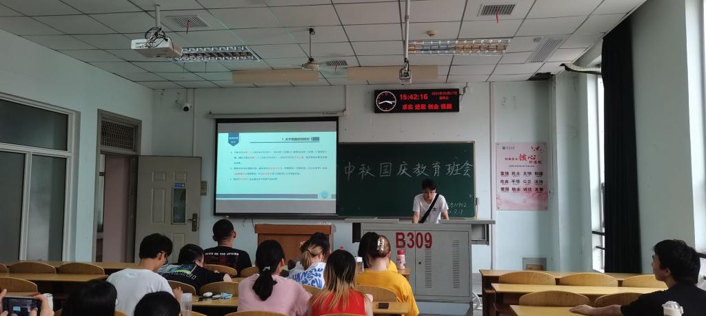 会上,班主任老师对同学们进行了假期安全教育指导,为同学详细讲解放假通知及相关注意事项,着重强调中秋节、国庆节的假期安全。从交通出行、饮食健康、疫情防控等多维度出发,关注学生的假期生活状况。除假期安全外,各班主任更对同学们的新学期规划进行指导。班主任们深切关注同学们新学期的学习计划与安排,鼓励同学们坚持自己的人生规划与目标,系好大学的每一颗扣子,敦促同学们要不断提高自我要求,加强自我约束,追求卓越。