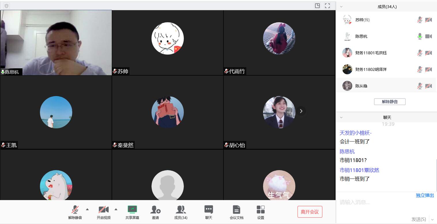 围绕“当前疫情形势”、“开学情况”、“网课”、“两个强调”四个方面,陈老师首先从分析我国及全球疫情形势开始,集中讲解了为什么要做好打持久战的准备!其次,围绕当前各大高校开学情况进行分析和讲解,分析了当前开学所面临的困难及挑战,介绍了湖北省高校坚持全省一盘棋的战略方针,讲解了现开学面临的复杂程序以及繁杂手续,让我们保持好心态,耐心等候学校和辅导员通知!此外,提醒大家调整好状态,做好每周晚点名工作和线上摸排工作,摸排好每一位班级同学的状况及需求,实时反映报告异常情况,做好线上汇报工作!