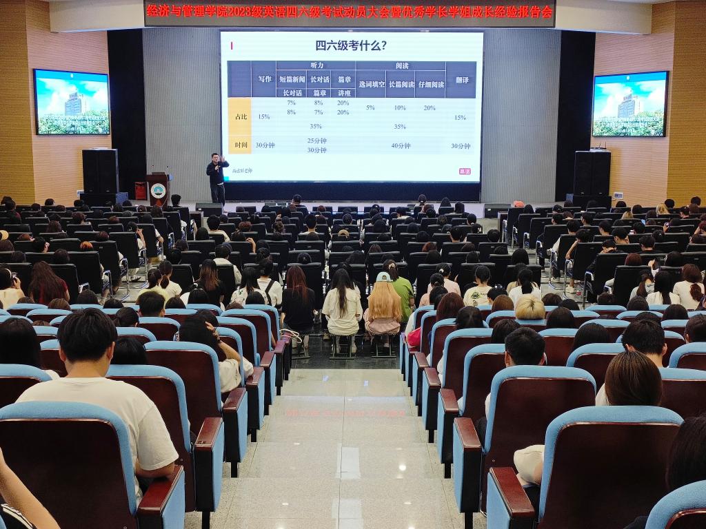 2024年上半年全国大学英语四、六级考试将于6月15日进行。为进一步做好考前辅导,帮助学生调整好备考状态,鼓足考试信心,5月13日晚上7:00,kaiyun登录中国入口登录在西校区农科大楼1058报告厅举行2023级本科生英语四六级考试动员大会暨优秀学长学姐成长经验报告会。活动由2023级辅导员李镇主持,学院党委副书记平先锋、教师代表及全体学生参加。