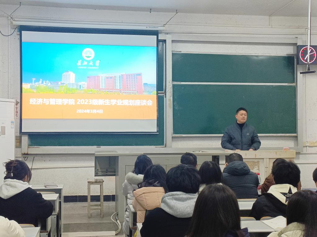 会议伊始,来自工商管理类、经济学类、农林经济管理(职)专业的9名学生代表依次上台发言,同学们汇报了自己上学期的学习情况,阐述了对本专业的认识,并分享了自己接下来的学习和成长规划。随后,现场进入师生互动交流环节,同学们针对日常学习上存在的困惑、各专业的区别与联系、未来就业方向、转专业申请咨询等进行提问,在场的老师们一一耐心解答,互动氛围十分活跃。