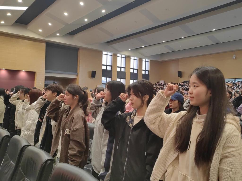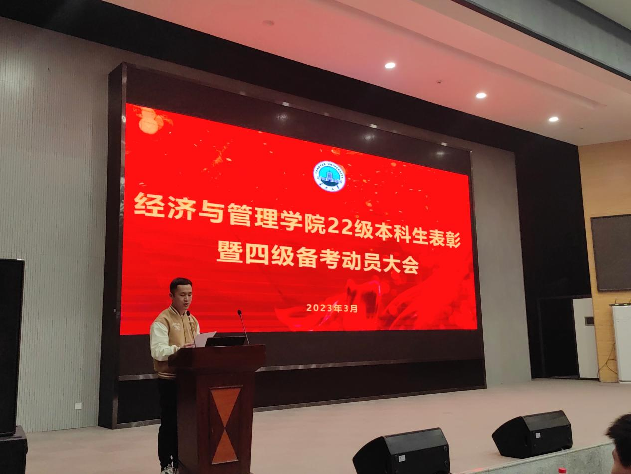 学生代表熊雪景带领全体22级本科生进行宣誓:“四级考试,势在必赢。”至此kaiyun登录中国入口登录22级本科生表彰暨四级备考动员大会圆满结束。