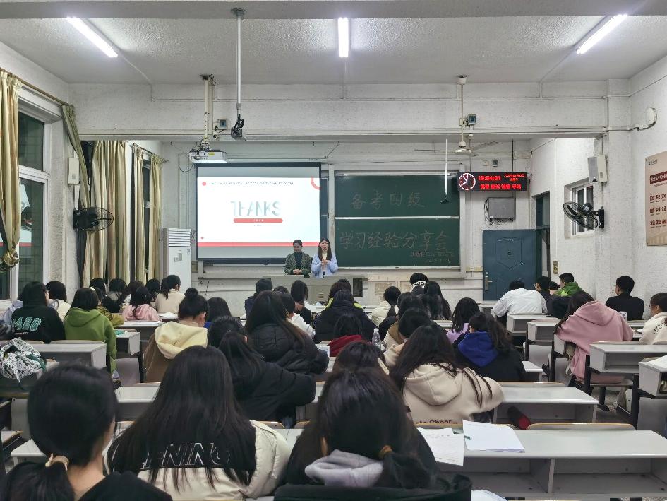 本次四级备考经验分享会圆满结束,两位学姐的精彩分享让在座的同学们对自己大学阶段的学习生活有了更清晰的了解,进一步营造了浓厚的学习氛围,激发了大家树立远大目标并为之努力的积极性。