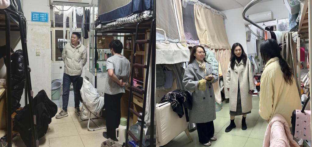 此外,辅导员老师们还深入考研学生宿舍,进行走访慰问。在宿舍里,老师们与同学们亲切交谈,细致了解大家的复习进度与生活状况,叮嘱同学们注意防寒保暖、保持健康,并再次送上鼓励与祝福。面对面的交流让紧张的备考氛围中注入了浓浓的温情。