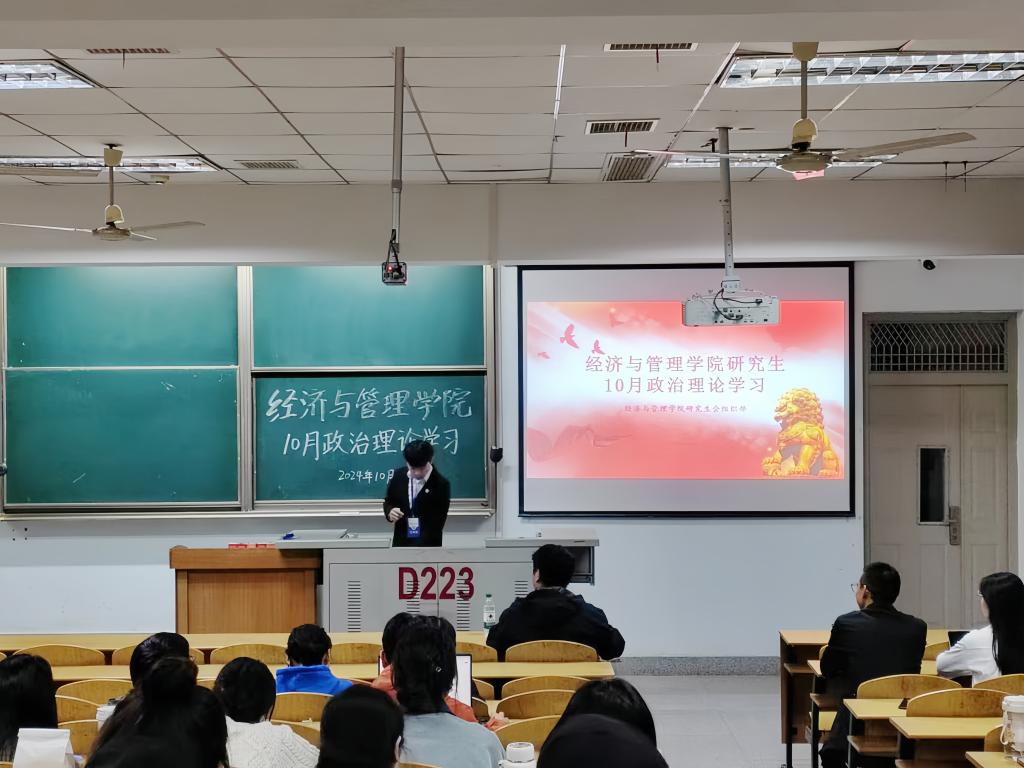 (通讯员 李瑞光)为深入学习习近平新时代中国特色社会主义思想,提升kaiyun官网研究生政治理论素养,学院于10月28日晚7:00,在13教D-223教室开展十月政治理论学习活动。本次活动由研究生会组织开展,兼职辅导员潘永正、2024级研究生到会参加。
