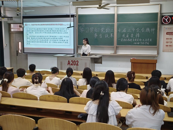 (通讯员 严允焓)学习贯彻党的二十届三中全会精神,争当改革发展先锋。2024年9月19日,经济系本科生党支部在东校区13教A202召开九月主题党日活动。活动由党支部支委郝颖丽主持。