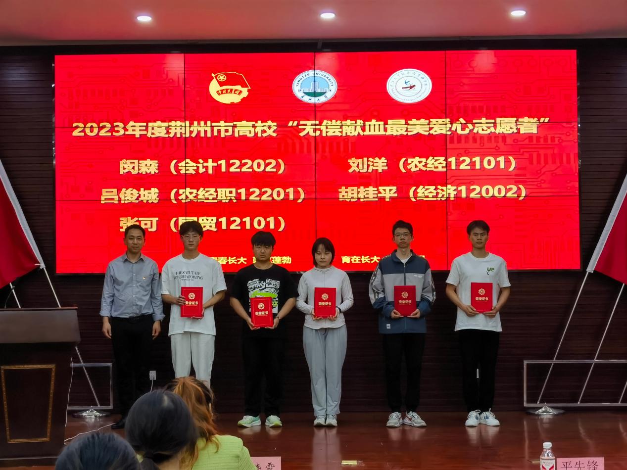 主持人王璐佳宣读学院志愿服务表彰文件,会计12202班闵森、农经职12201班吕俊城、国贸12101班张可、农经12101班刘洋和经济12002胡桂平5名同学获2023年度荆州市高校“无偿献血最美爱心志愿者”,工商类32305班刘怡、金融12101班孟宪锦弘、工商类32301班陈慧玲、经济类32304班刘青沂和工商类32308班梁闫璐5名同学获kaiyun登录中国入口登录2023—2024年寒假“我的返家乡实践故事”优秀个人,大家先后上台接受表彰。