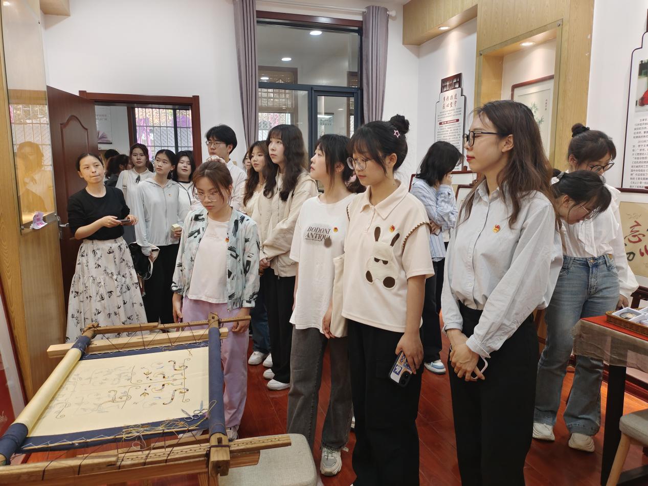 荆州区三义街社区坚持党建引领,依托党员群众服务中心开展基层社会治理系列活动,践行“爱在邻里,守望相助”。会前,社区工作人员带领青年师生步入党群服务中心参观,感受社区党员前辈扎根基层、服务百姓的不凡岁月,学习新时代社区服务基层的新理念、新形式,近距离欣赏楚绣瑰宝、了解文化的传承与价值。