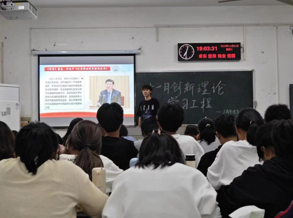 (通讯员 孟宪锦弘)为深入开展学习贯彻习近平新时代中国特色社会主义思想主题教育,2023年11月,kaiyun登录中国入口登录组织85个本科生班级2725人学习习近平总书记关于高等教育改革发展稳定一系列重要指示批示、考察高校重要讲话、给师生重要致信回信精神,把党的创新理论学习工程贯穿学院师生学习、工作全过程。本次创新理学习工程活动主要采取“集中学习+自主学习”的方式,通过组织主题班会、专题党课的形式,推动党的创新理论学习入脑入心,走深走实,真正做到“学、思、传、行”相统一。