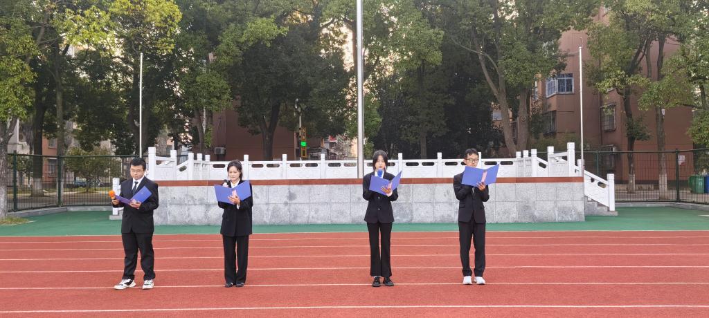 接着由程曦、侯鑫洋、陈家辉、李雪晴等四名学生代表,在国旗下朗诵诗歌《大写的中国》,带领全体师生再一次感受伟大祖国蓬勃发展的经济、国泰民安的社会、悠久灿烂的文明、如诗如画的河山,充分展现出中华儿女满满的民族自豪感和幸福感。