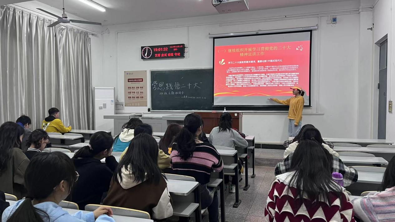 (通讯员:方孝杰)为深入学习宣传贯彻党的二十大精神,着力提升团的引领力、组织力、服务力和大局贡献度,全面深化改革,全面从严治团,不断保持和增强政治性、先进性、群众性,团结引领广大团员青年永远跟党走、奋进新征程,以实际行动践行党的二十大精神。在学院分团委的认真组织下,各团支部开展“学思践悟二十大”主题团日活动。