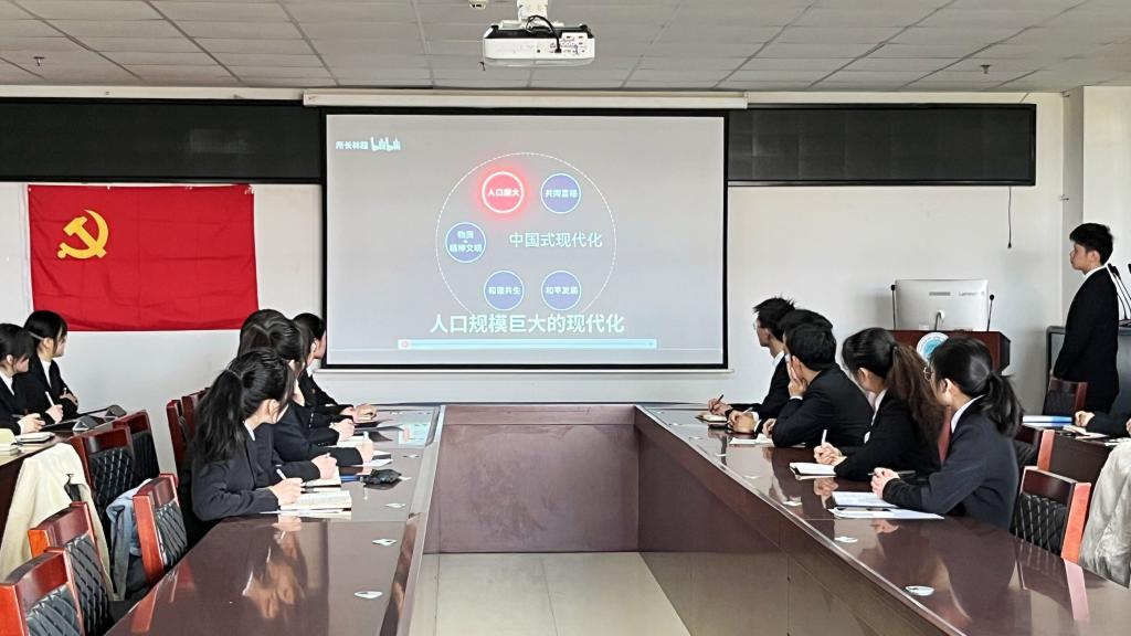 在“青年选择”这一学习板块,郭斯齐同志以青年宋玺,宋彪,于逸飞,周承钰的成长经历为榜样事例,号召在座的党员同志将个人发展与国家、社会的需求相结合,敢作敢为、勇于追梦,将火热青春融入时代洪流中。紧接着会议解读了中国式现代化的历史经验和重要启示。大家纷纷表示,要坚持现代化的自主性,创新性,多样性,大力推进中国式现代化。