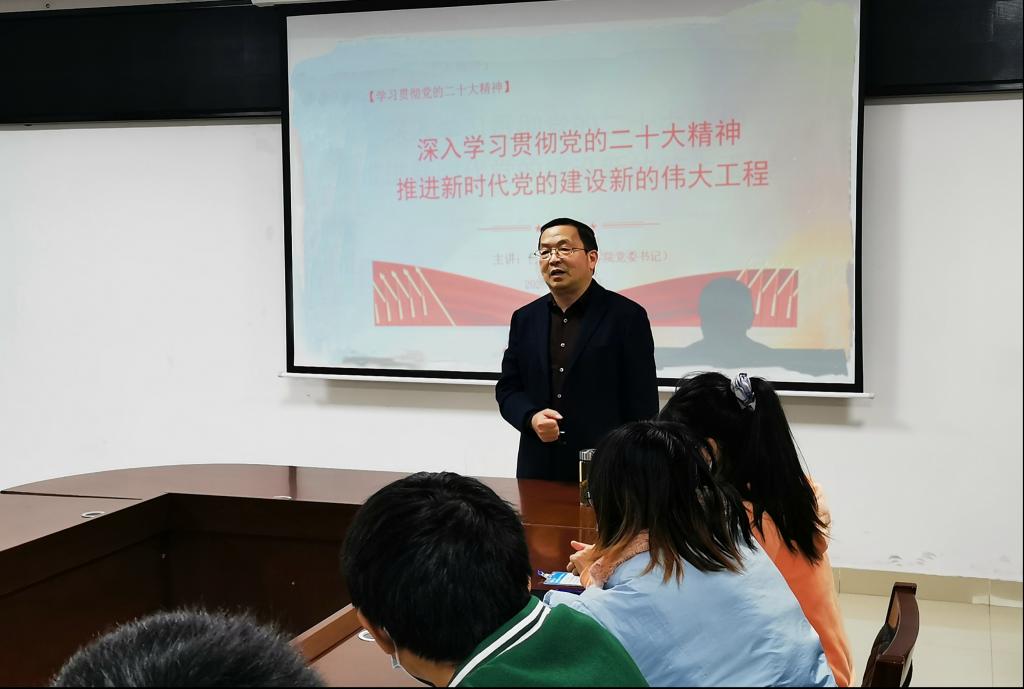 宣讲会上,院党委书记樊帆教授从党的二十大的主题、新时代十年经历的三件大事、开辟马克思主义中国化时代化新境界、以中国式现代化全面推进中华民族伟大复兴、建设社会主义现化代国家的首要任务是要推动高质量发展等方面入手解读党的二十大报告,并重点围绕关于党的二十大的主要精神、关于新时代党的建设的基本内容、关于新时代推进党的建设新的伟大工程及全面从严治党需要“祛邪”和“扶正”齐抓共管等四个方面对党的二十大精神进行深入阐释和系统讲解。还强调,学习贯彻党的二十大精神是当前和今后一段时期学校的首要政治任务,必须聚焦党中央的大政方针和决策部署,不断推进学院事业高质量发展。