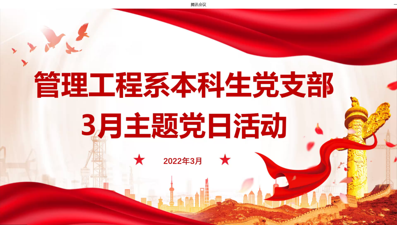 (通讯员:李丹萍)2022年3月31日晚上7点半,kaiyun登录中国入口登录管理工程系本科生党支部在线上通过腾讯会议召开三月主题党日活动。参与人员有支部学生党员与预备党员,会议由张华主持。