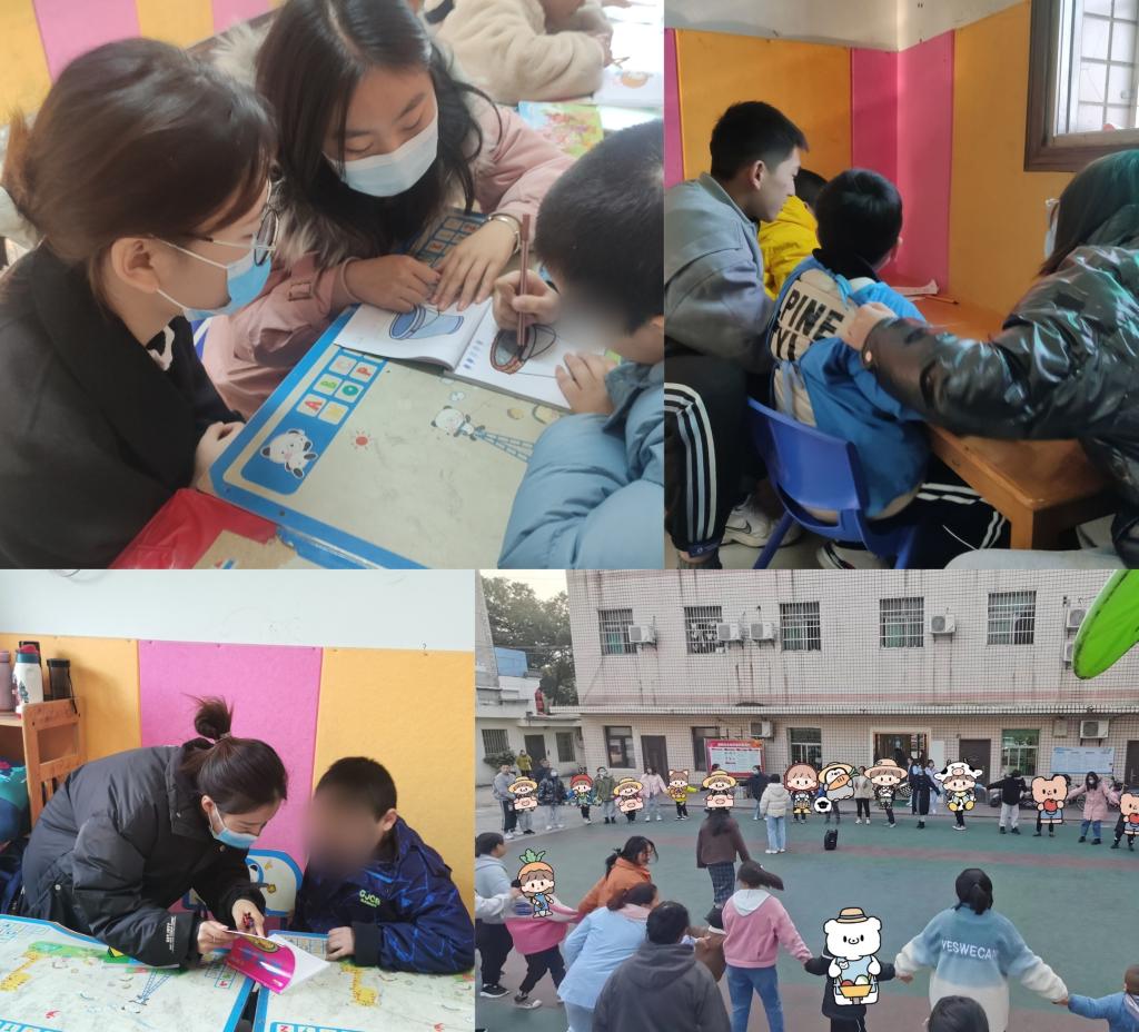 下午两点到四点半,各位党员同志恪守其职、听从安排。以一对一或一对二的方式陪伴孩子,在课堂上与孩子们一起拍皮球,做游戏,写作业,画画。随后,在康复中心工作人员的带领下,党员同志同孩子们围成圈在后院进行“听歌做指令”、“跟随音乐转圈”等户外娱乐游戏。在经过两小时的陪伴后,党员同志与依依不舍的孩子们告别,在合影留念后安静的离开。