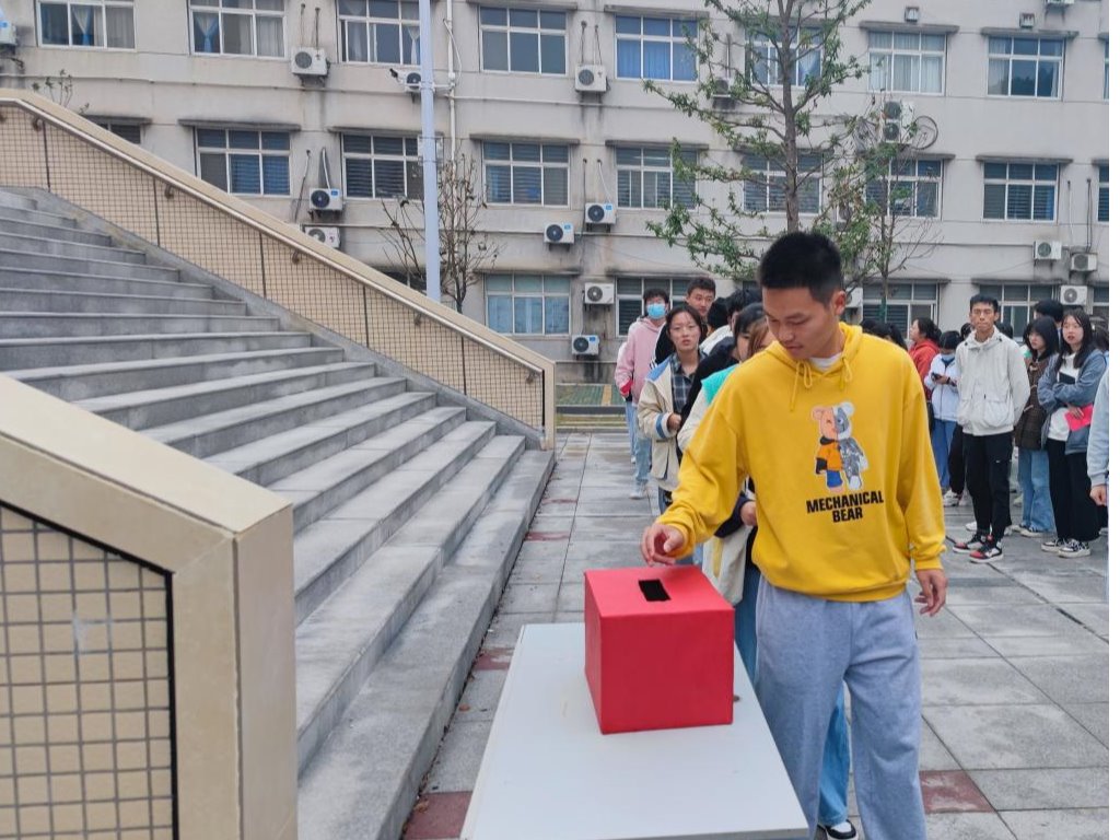 8时30分选举正式开始,郭俊老师和李云妮老师宣读了候选人名单基本情况 ,介绍了有关选举事项说明。之后投票正式开始,同学们将选民证交给工作人员仔细核验后,领取选票并认真填写。在工作人员的指引下,选民们在投票箱前郑重投下自己的一票。