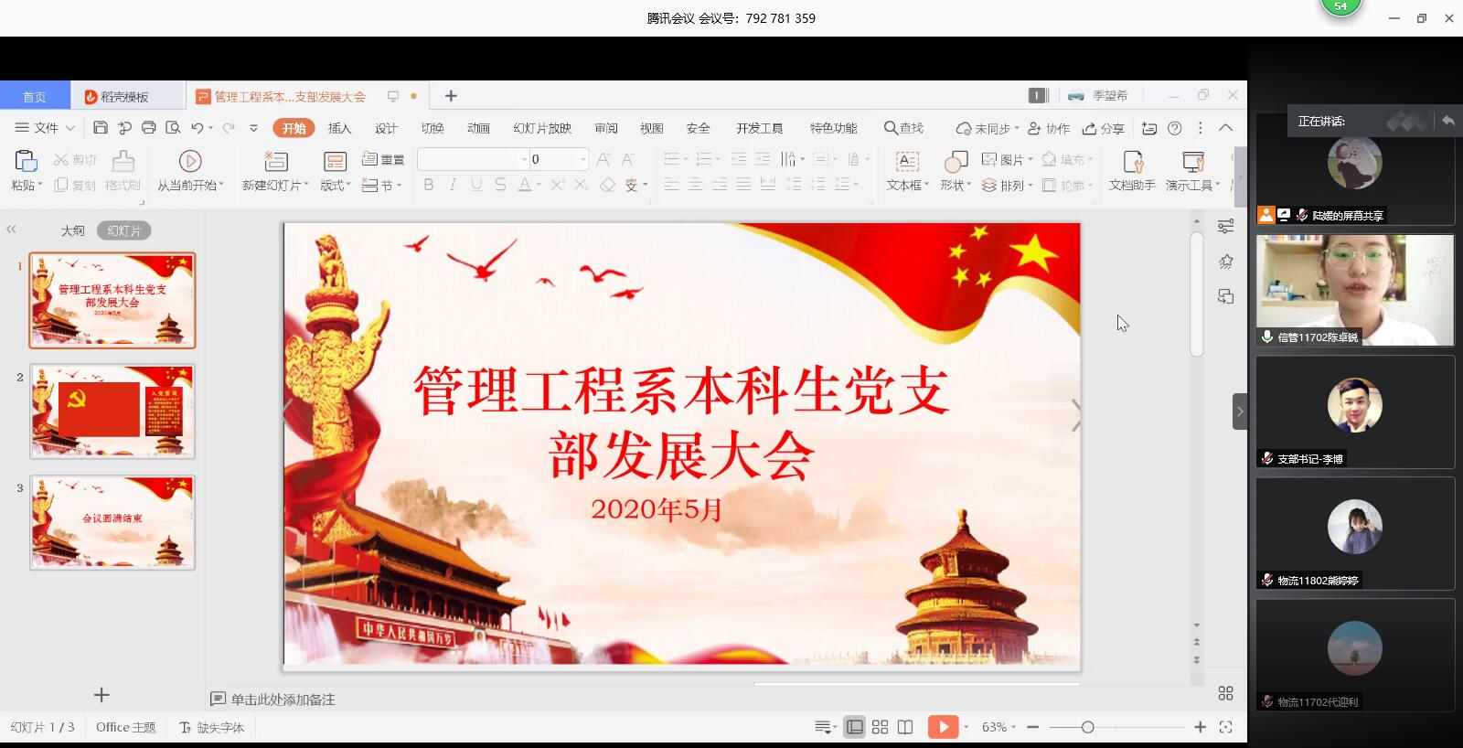 2020年5月25日下午2点,kaiyun登录中国入口登录管理工程系本科生党支部在腾讯会议上召开了党员发展大会。会议主要目的是讨论关于发展陈卓锐等6名同志为预备党员的事宜,本次会议由陆媛主持,参加人员主要有管理工程党支部书记李博老师、8位正式党员、14位预备党员以及6位发展对象。