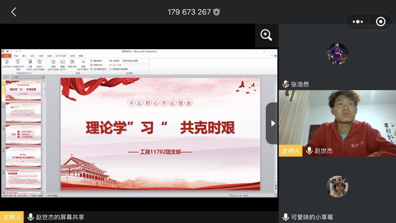 各团支部围绕“习近平关于新冠肺炎疫情防控工作的重要讲话”和“学校领导在2020年工作会议上的讲话精神”为主要内容,开展了线上主题班团会,组织青年学生学习领悟精神内涵,坚定信心、共克时艰。通过学习,学生们深刻见证了国家强大的综合实力、众志成城风雨同舟的民族精神、中国特色社会主义制度的显著优势。工商11702班张浩然同学说:“感谢学校提供了良好的网课学习条件,我们面临更快的知识更新速度、更新的时代课题,理应坚定‘读万卷书’的志向,葆有‘行万里路’的气魄,树立梦想从学习开始、事业靠本领成就的观念,让勤奋学习成为青春远航的动力,让增长本领成为青春搏击的能量。”