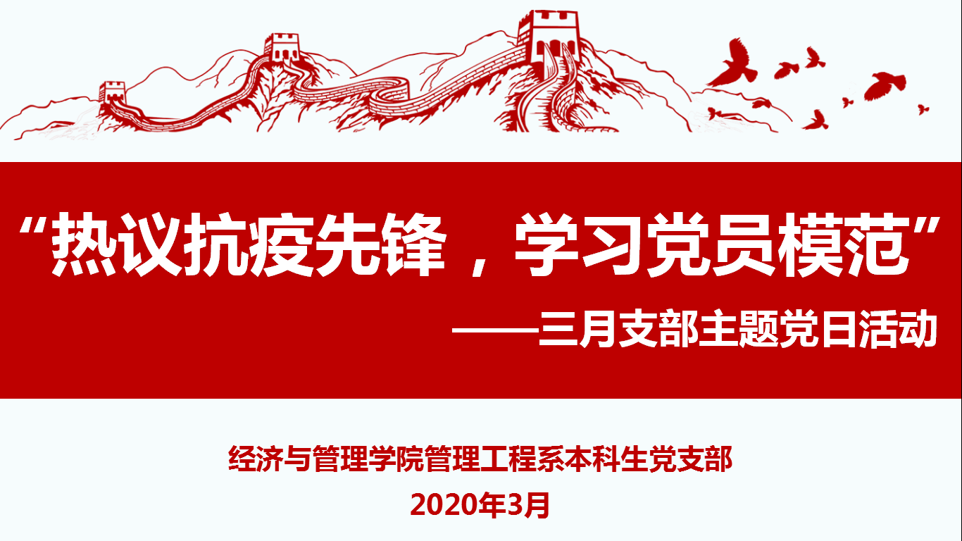 “热议抗疫先锋,学习党员模范。”2020年3月24日晚,kaiyun登录中国入口登录管理工程系本科生党支部在线上召开3月支部主题党日活动,党支部全体正式党员和预备党员参会,活动由支部副书记杨一佳主持。