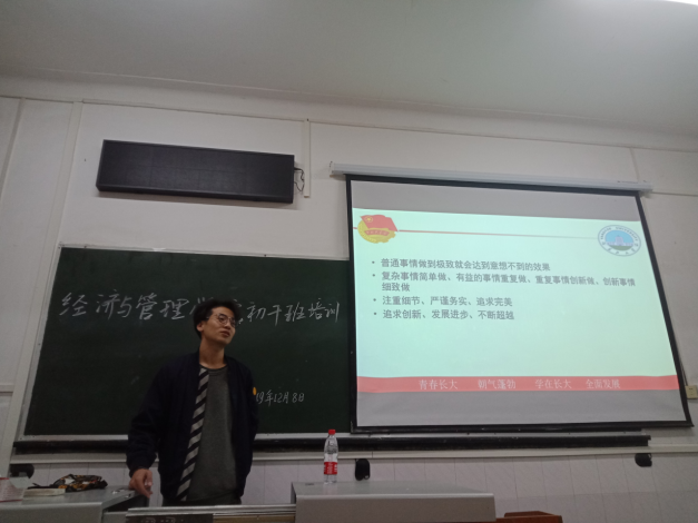 午休后,第三部分的培训在二教108准时开始。首先,任玉婷老师就为何做?为谁做?如何做?三个问题对学生干部这四个字进行了简要分析。她建议学生干部要注意交往技巧,构建良好的人际关系、寝室关系,要学会正确沟通,避开沟通雷区等。并且她也希望学生干部可以“坚守初心,保持热爱”。