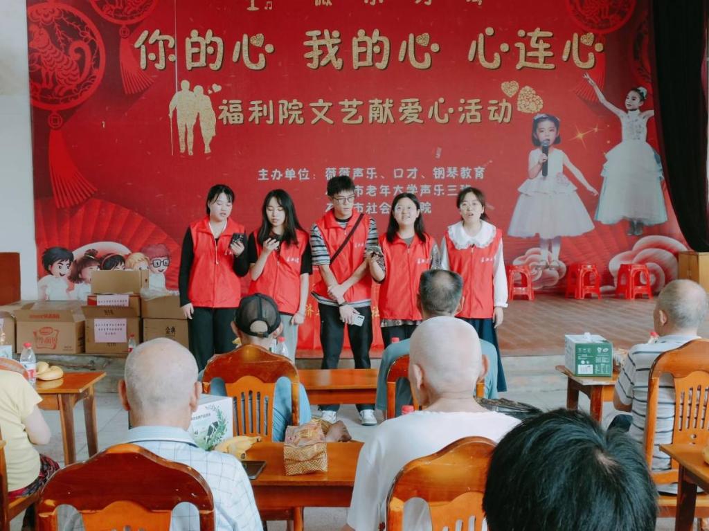 活动当天,志愿者们早早集合,整理送给福利院老人们的牛奶、面包、水果等慰问礼品。到达福利院后,辅导员李镇老师首先作了活动介绍,让老人们明确了志愿者们此行的目的。随后,带领志愿者为老人们奉上了提前精心准备的歌曲演唱、朗诵等才艺节目,引得台下老人们的阵阵掌声,志愿者们还为老人们逐一送上了爱心礼物。