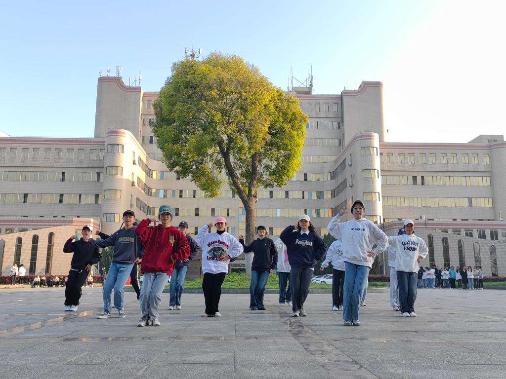 工商32204班带来的《护花使者》表演,以幽默的服装和道具,加上熟练的舞蹈动作,一开场便调动起大赛现场氛围。接着各个参赛队伍依次上台,展现出各个参赛队伍创新的舞蹈动作和队伍形式。