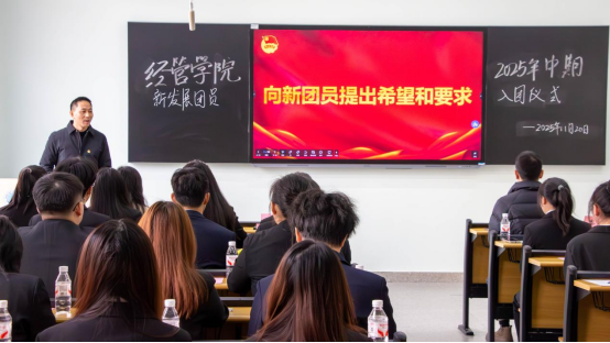 在庄严的国歌声中,仪式正式启幕。主持人宣读新团员名单后,与会领导老师为新团员颁发团员证并佩戴团徽。在徐静伶同学的领誓下,全体新团员面向团旗庄严宣誓,正式加入中国共产主义青年团。随后,陈玉洁作为新团员代表发言,表达了加入团组织的荣誉感与为之奋斗的决心;优秀团员代表会计12202班张梦微则分享其成长体会,勉励新团员砥砺前行、积极进取,在团组织中锻炼成长、共同进步。