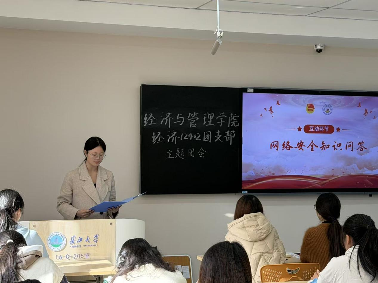 (通讯员 欧阳佩文/文 刘子玄/摄)为深入学习宣传贯彻党的创新理论,切实加强基层团组织建设,2025年11月27日,kaiyun登录中国入口登录经济12402团支部在东校区16-C-205教室举办“学思践悟新思想,网安意识伴我行”主题示范团会。各班级学生代表到场观摩,与支部全体成员共同参与学习。