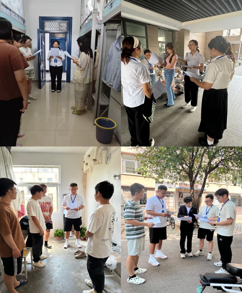 9月26日中午,研会生活部和宣讲员们一起走进各个学生寝室,与同学们面对面进行安全教育宣讲。喜迎国庆,平安出行,安全员们为同学们强调以下六点注意事项:离校外出,要先履行请销假手续;出行在外,要严格遵守交通规则,保持通讯畅通,与家人、学院保持密切联系,定期汇报自身动态,假期结束,要按时回校;严防偷窃与信息泄露,勿将手机号码、学校和家庭等信息告诉陌生人,注意人身财产安全,警惕电信诈骗。遇有异常情况,及时与老师和家人沟通,以免被骗;一定通过正规渠道购票乘车,不要乘坐无牌、无证、无运营资质和超载的交通工具;天气可能多变,密切关注天气变化,不到危险区域、不深入未开发或自然条件恶劣的区域活动,谨防各类自然灾害,知晓并掌握各类安全常识,提高自我防护能力;特别强调:同学们在校内、校外骑共享或个人的电动车(自行车)时,务必按要求佩戴头盔,不超载、不超速、不做危险骑行行为,规范停车;假期期间留校的同学,外出时,要负责锁好寝室门窗,断电(必须完全拔下电源插头)、关闭水龙头,确保寝室消防安全。不能夜不归宿,不得留宿外来人员。