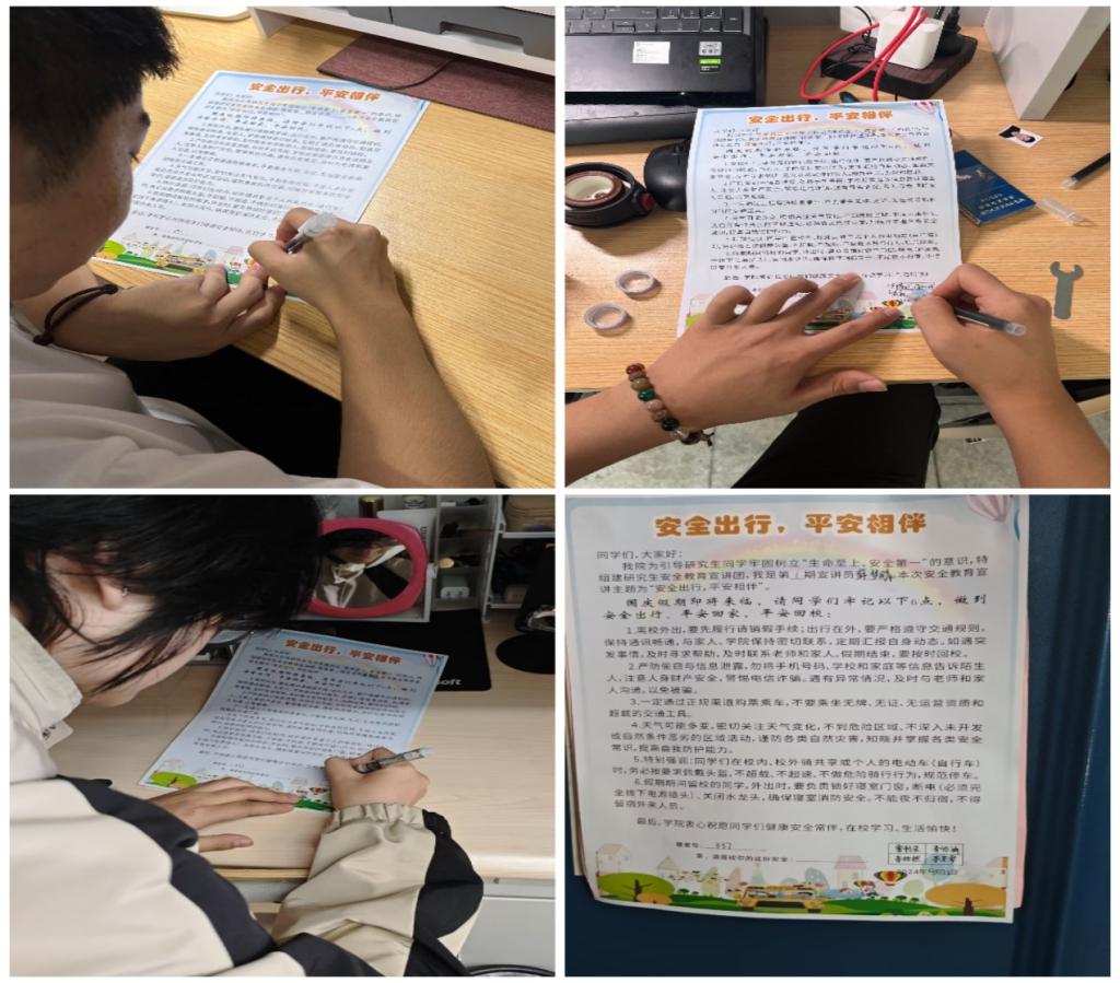 在活动进行中,同学们认真听讲,积极交流。宣讲结束后,同学们以宿舍为单位,纷纷在宣传页上签字,并将这份来自学院的殷殷嘱托粘贴在宿舍门后,以便时刻提醒自己增强安全防范意识。